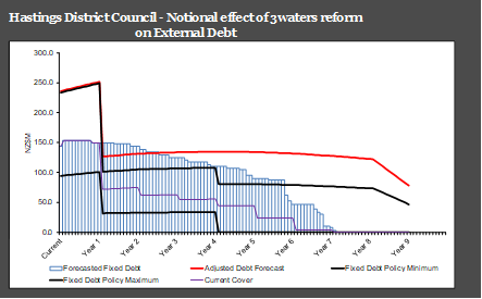 4.11 As was requested at the previous Risk and Audit Committee meeting, officers have created a graph that forecasts the future level of debt cover that would be in place if the water reform was to take place and 50% of Council debt due to water was to be taken over by the new water entity.