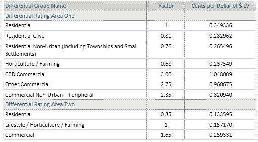 All land in the Hastings District will be allocated to either Differential Rating Area One or Differential Rating Area Two. These areas are defined on Council map ‘Differential Rating Areas’ and are based on broad areas of benefit from the Council’s services and facilities. The costs of cyclone recovery have been allocated into the two rating groups with 67% of costs assigned to Differential Rating Area One and 33% of costs allocated to Differential Rating Area Two.