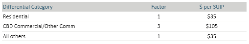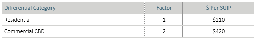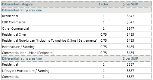 A differential targeted rate set and assessed in accordance with Section 16, Section 18 (2) and Schedule 2 Clause 6 of the Local Government (Rating) Act 2002, as a fixed amount per rating unit in the district. The rate is set on a differential basis, based on the location of the land within the district: This is applied to the same two differential rating areas as defined and used for the general rate: