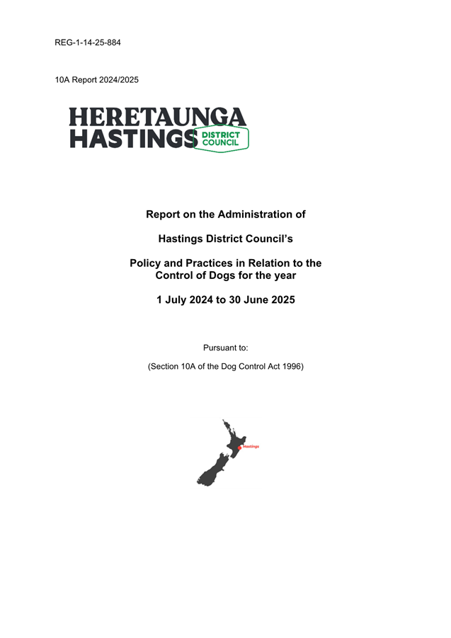 Report on the Administration of Hastings District Council's Policy and Practices in Relation to the Control of Dogs for the year 1 July 2024 to 30 June 2025 |